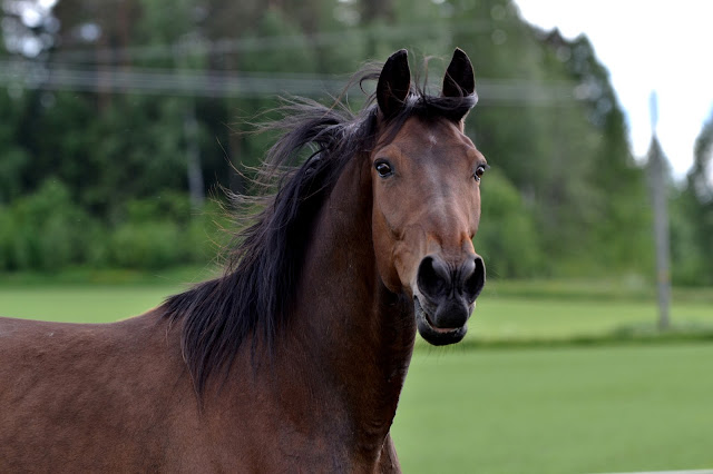 Eilen ensimmäistä kertaa elämässäni ohjasajoin Jönssillä. Se meni ihan hyvin muutamia pukituksia lukuunottamatta. Hevoista rupesi ärsyttämään kun se ei saanut touhuilla omia juttujaan eikä päässyt